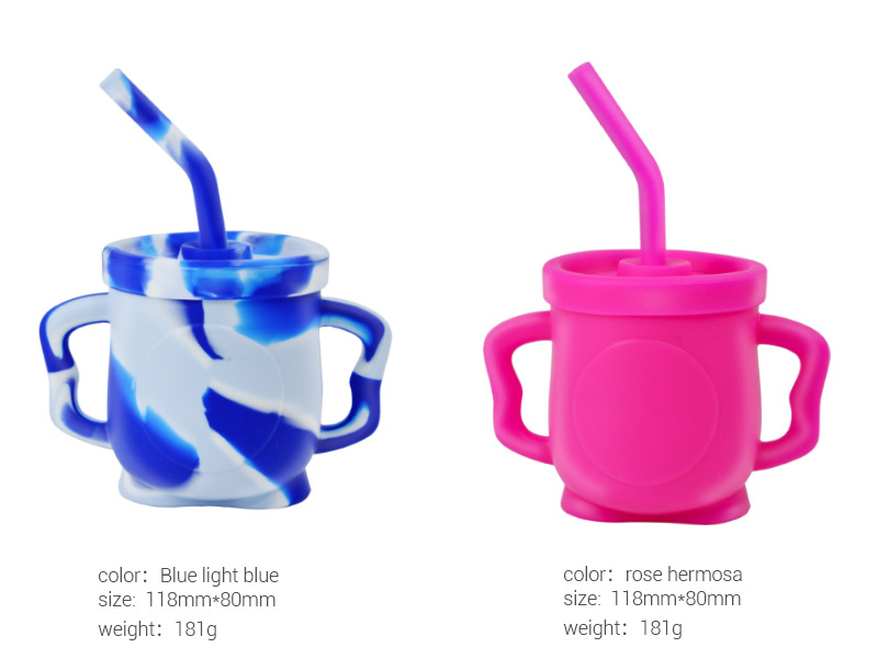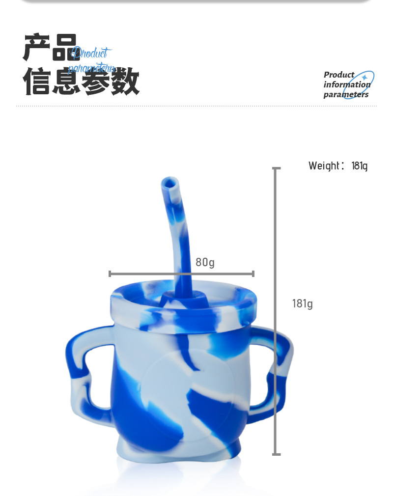 FDA新款儿童饮水硅胶杯 带盖子吸管防尘宝宝杯 环保把手硅胶杯