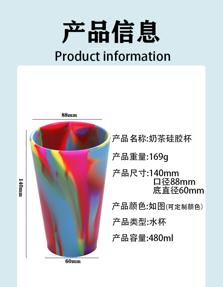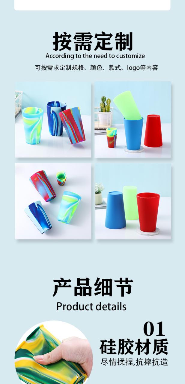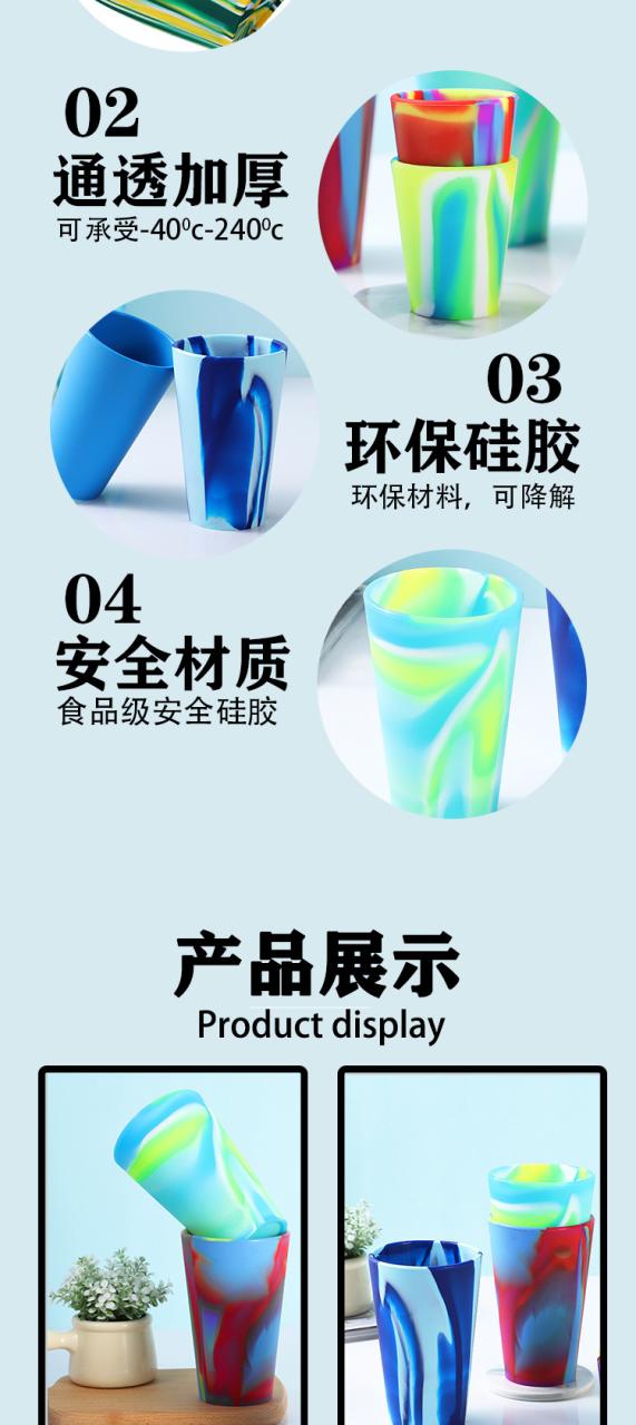 FDA认证硅胶杯 创意日常饮水杯户外便携彩虹杯支持印刷logo硅胶杯