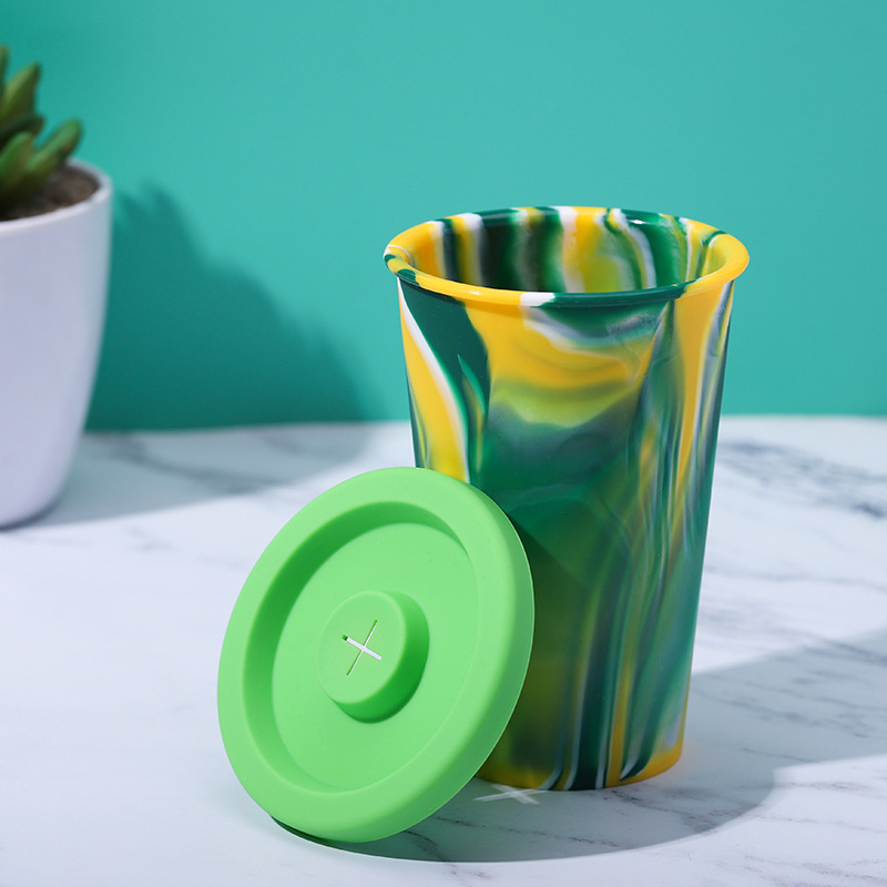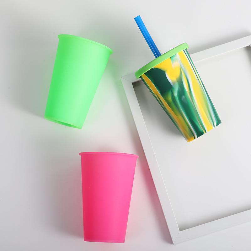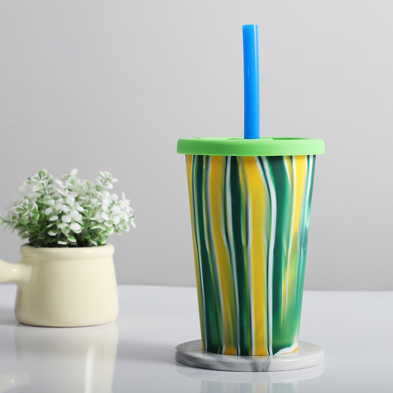 环保FDA创意奶茶杯 耐用饮水杯混色带盖吸管杯支持印刷logo硅胶杯